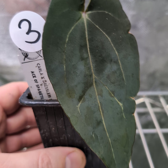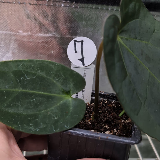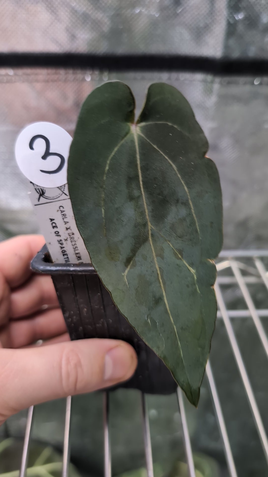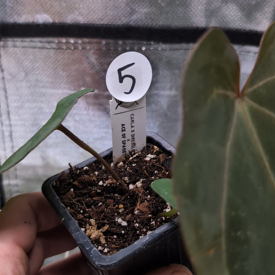 Anthurium (Carlablackiae x Dressleri Rio Guanche) X 'Ace of Spagetii'
