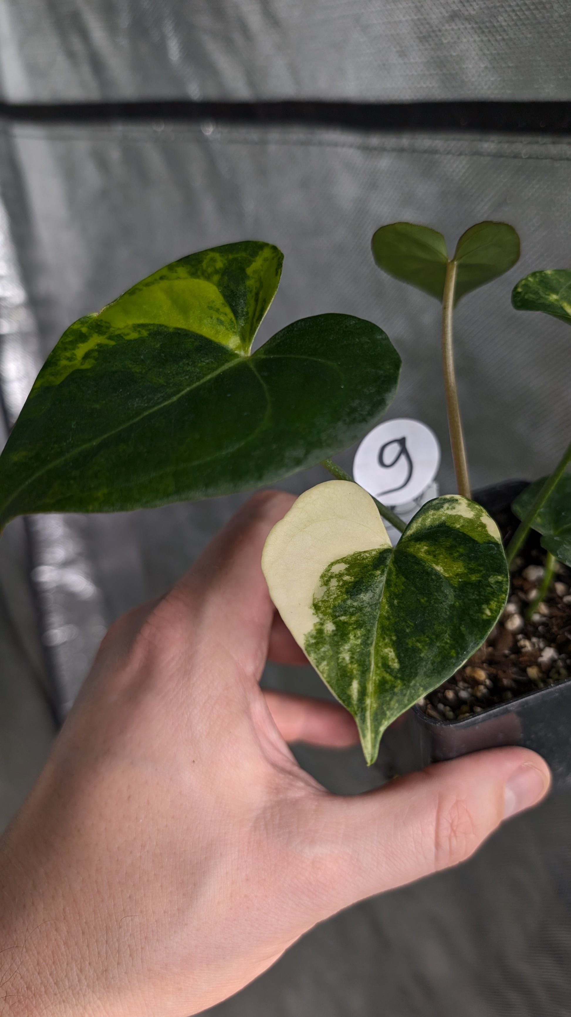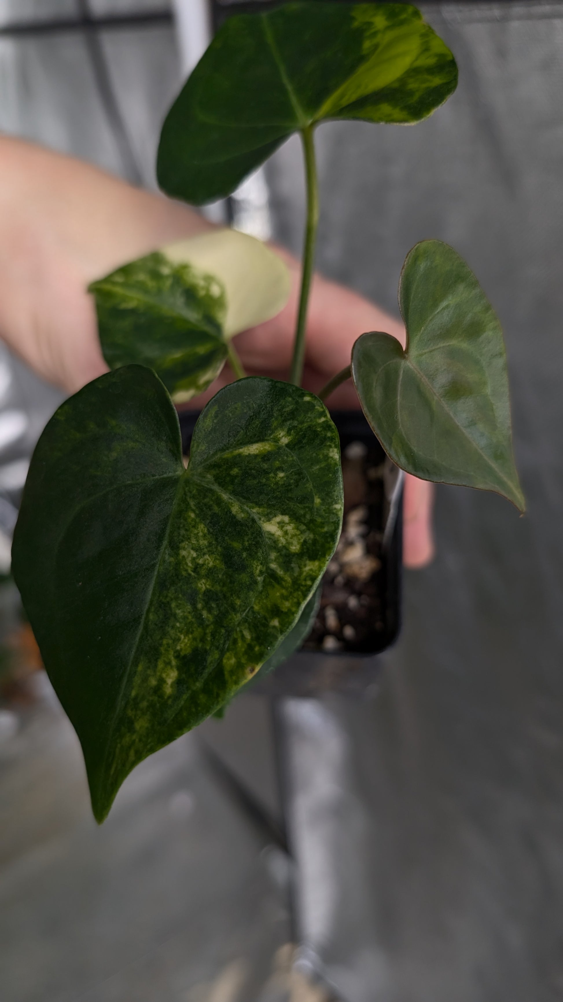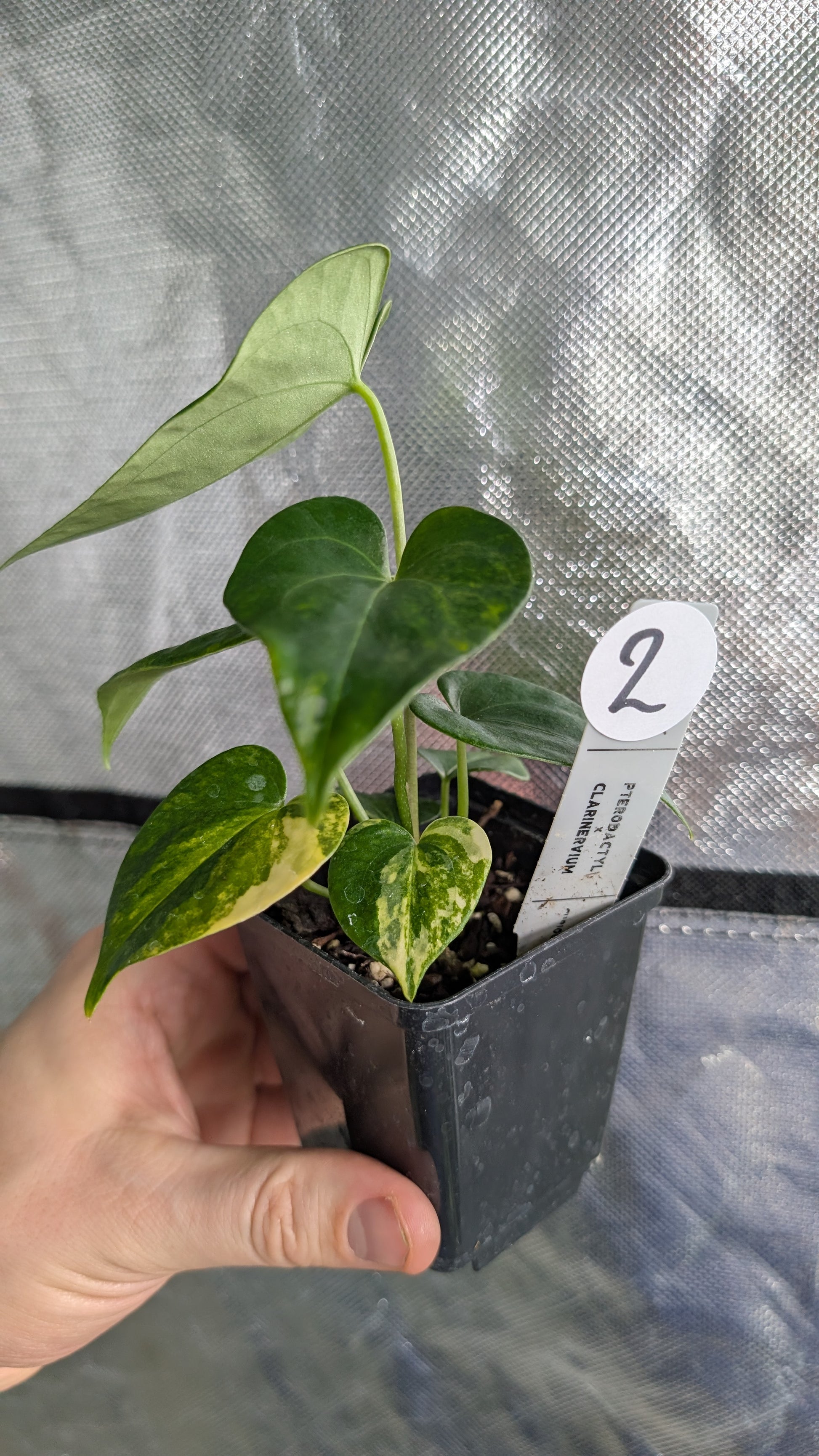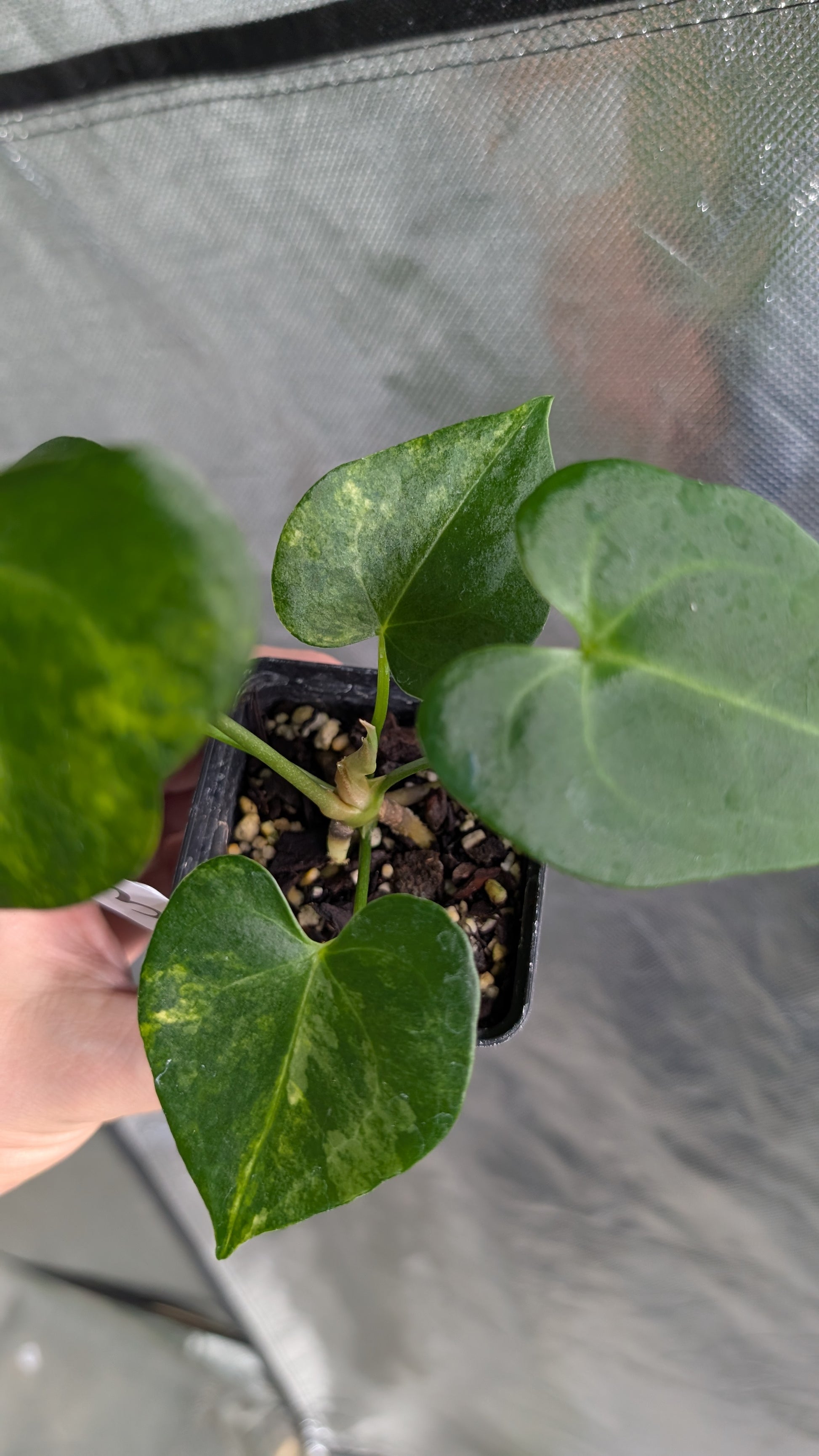 *Variegated* Anthurium Pterodactyl variegata x Clarinervium (or x self)