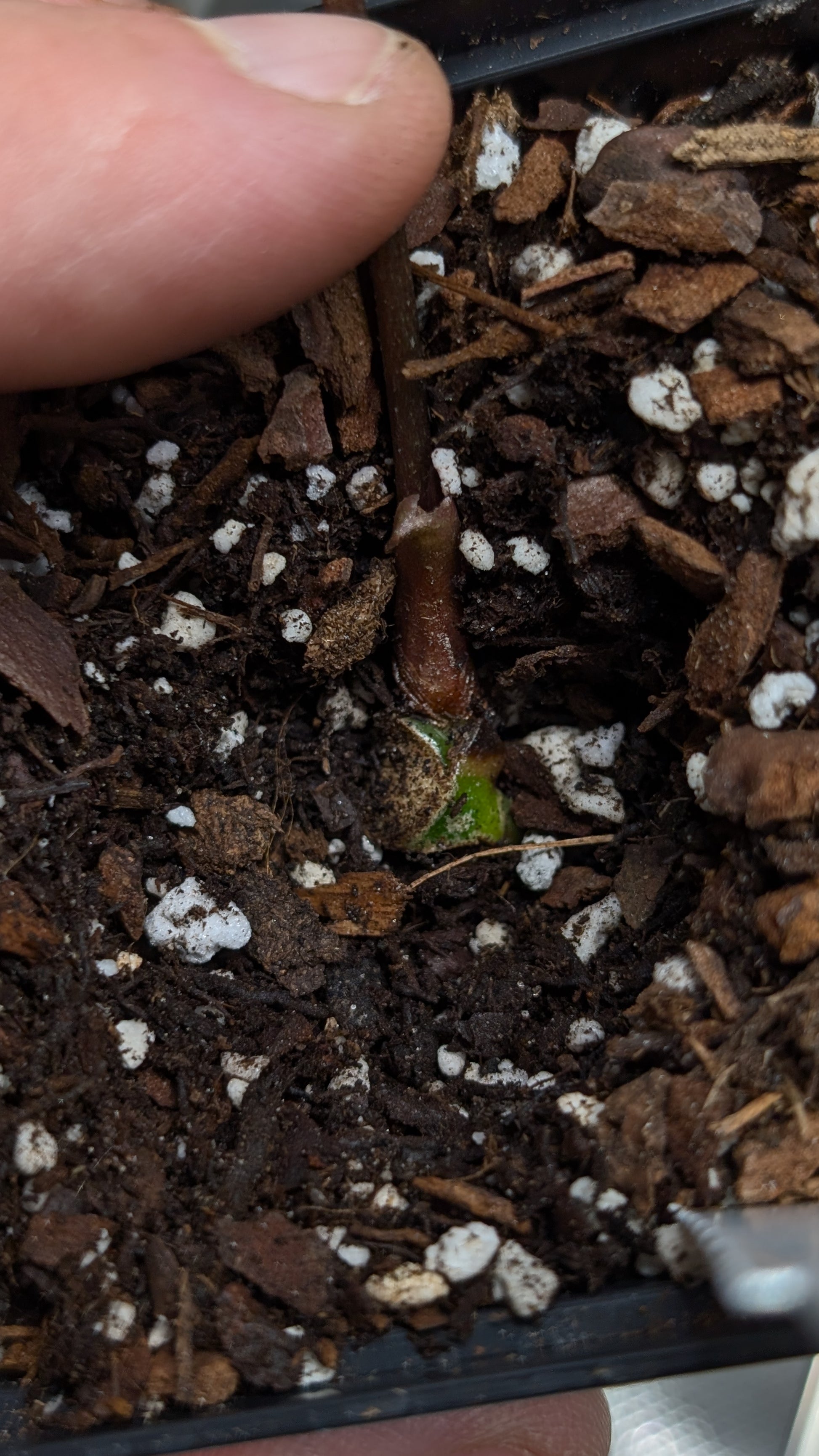 This was a leafless bottom cutting that has now grown its first leaf. Please only buy if you are familiar with bringing up such small cuttings.