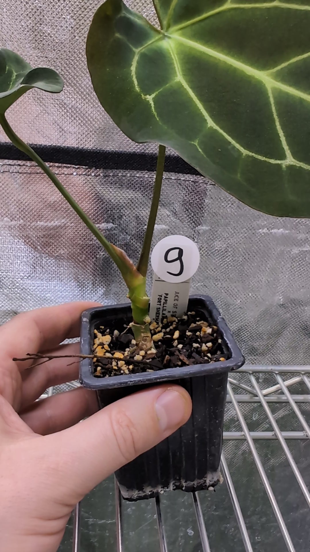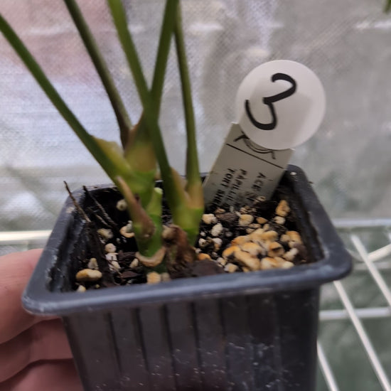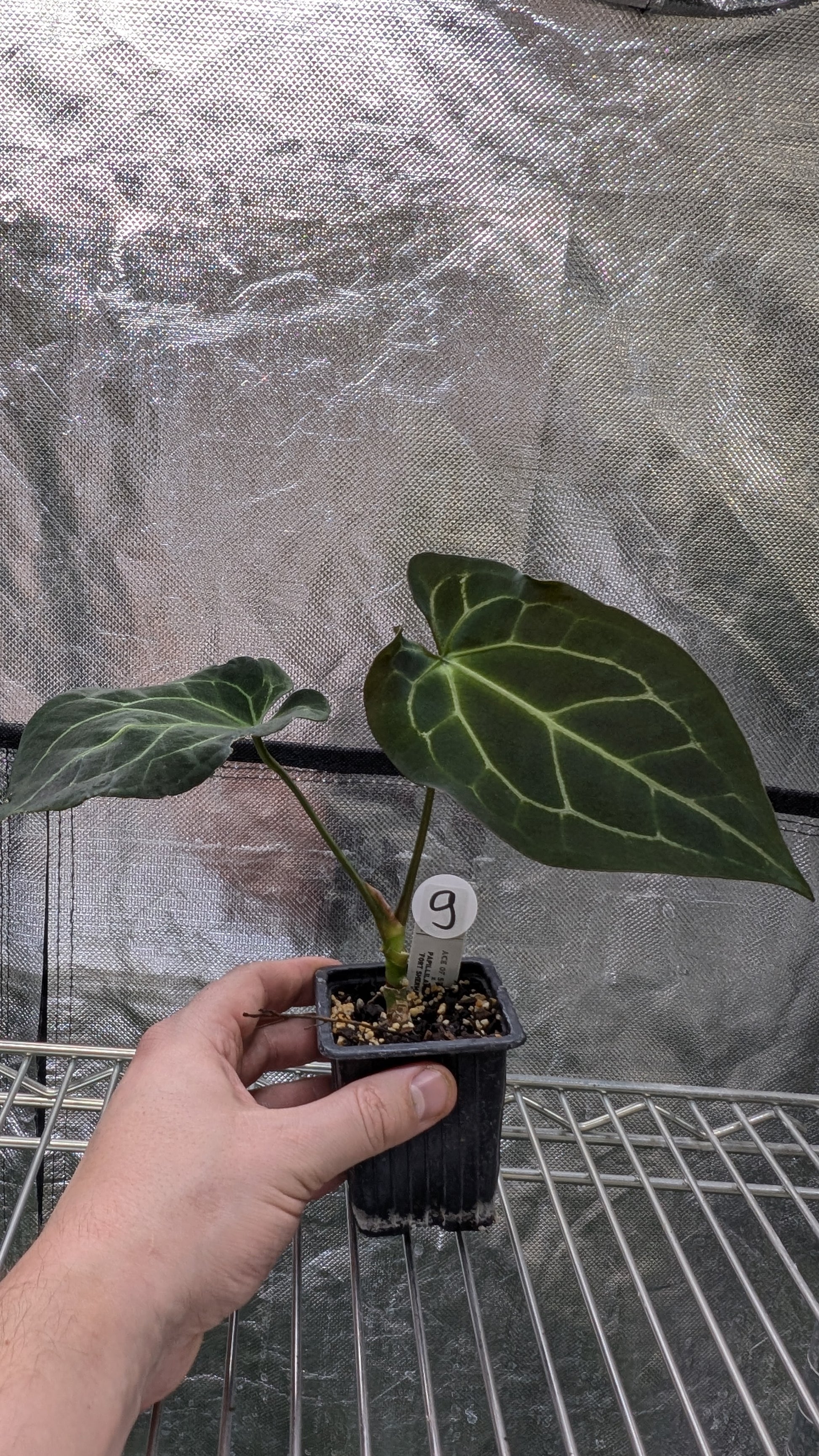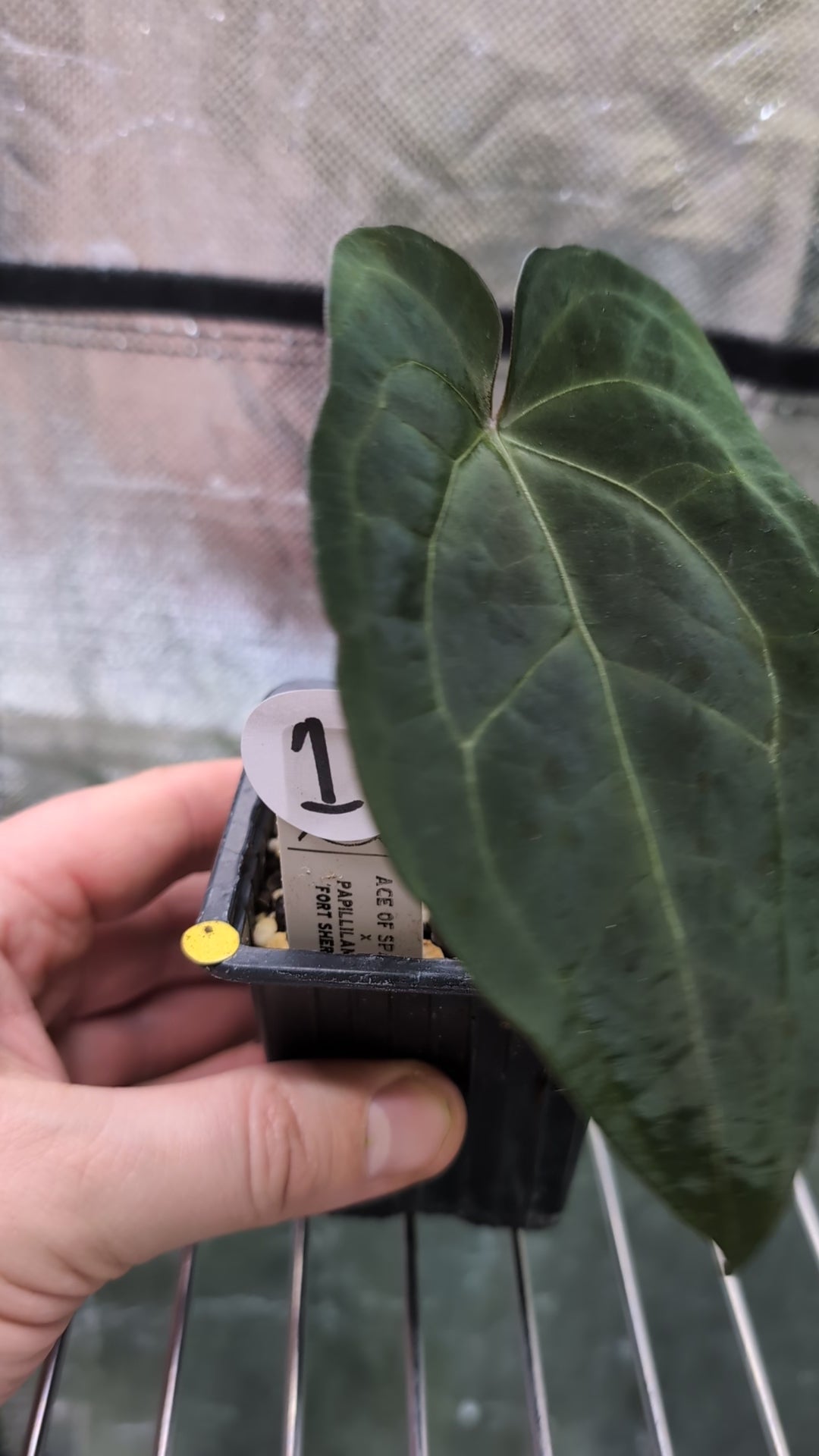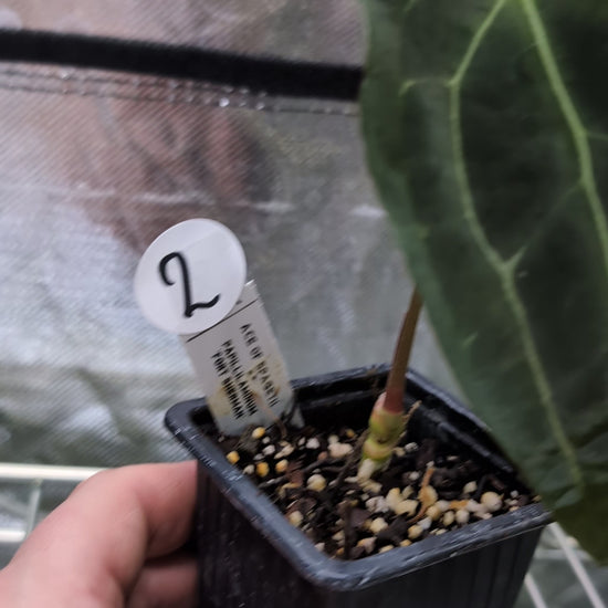 We crossed two of our amazing mother plants, Anthurium Ace of Spades x Anthurium Forgetii dark, lovingly named Ace of Spagetii was the Mother plant. Papillilaminum 'Fort Sherman' was the pollen parent.