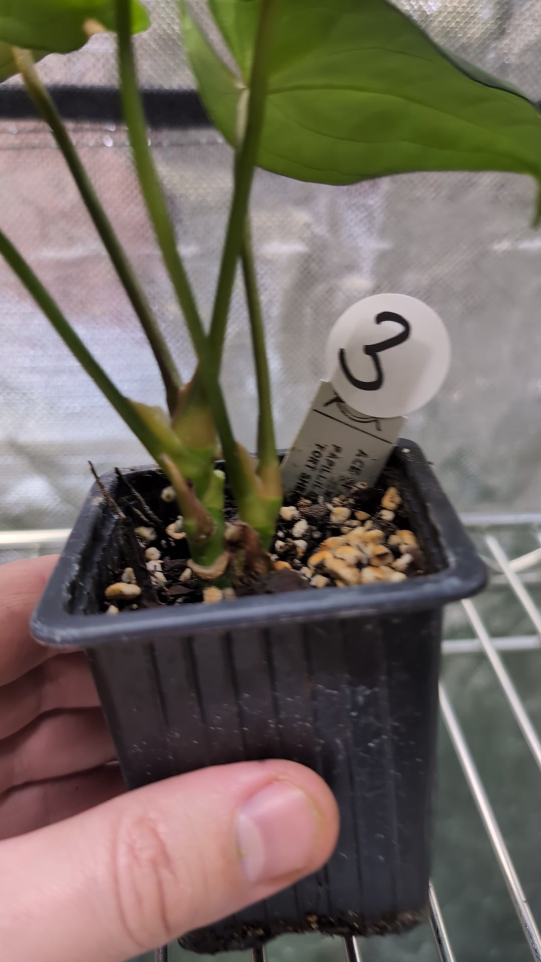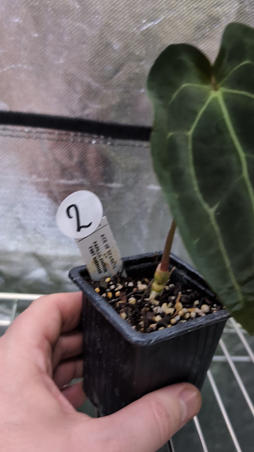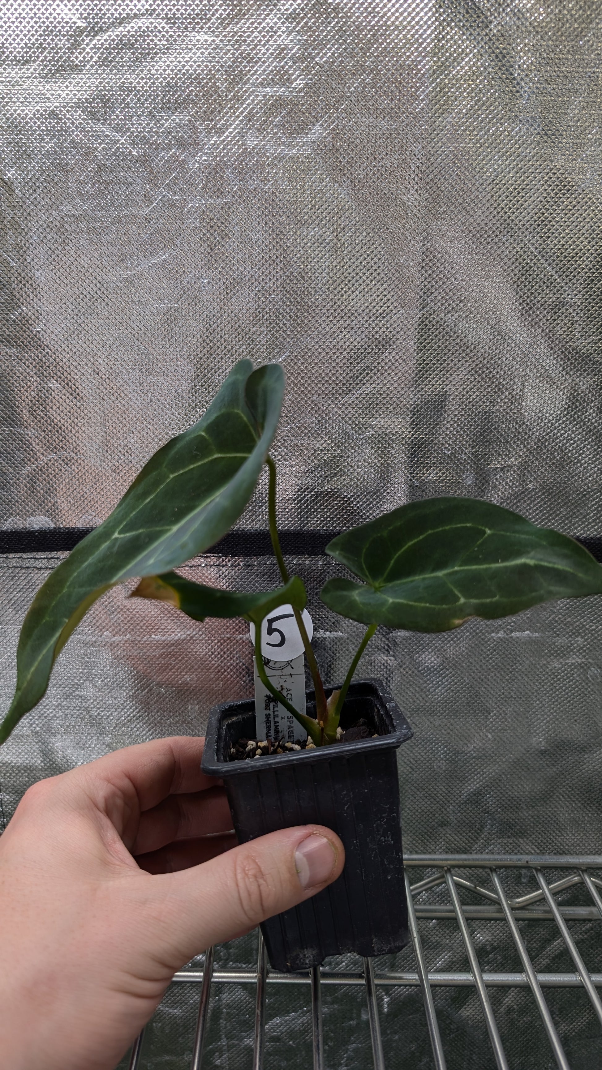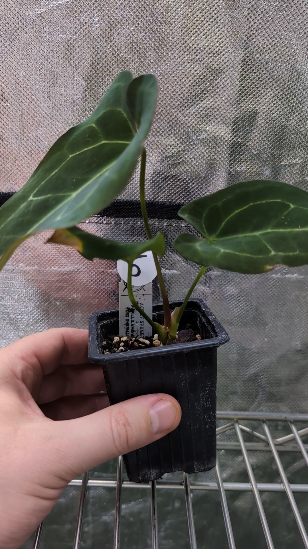 We crossed two of our amazing mother plants, Anthurium Ace of Spades x Anthurium Forgetii dark, lovingly named Ace of Spagetii was the Mother plant. Papillilaminum 'Fort Sherman' was the pollen parent.