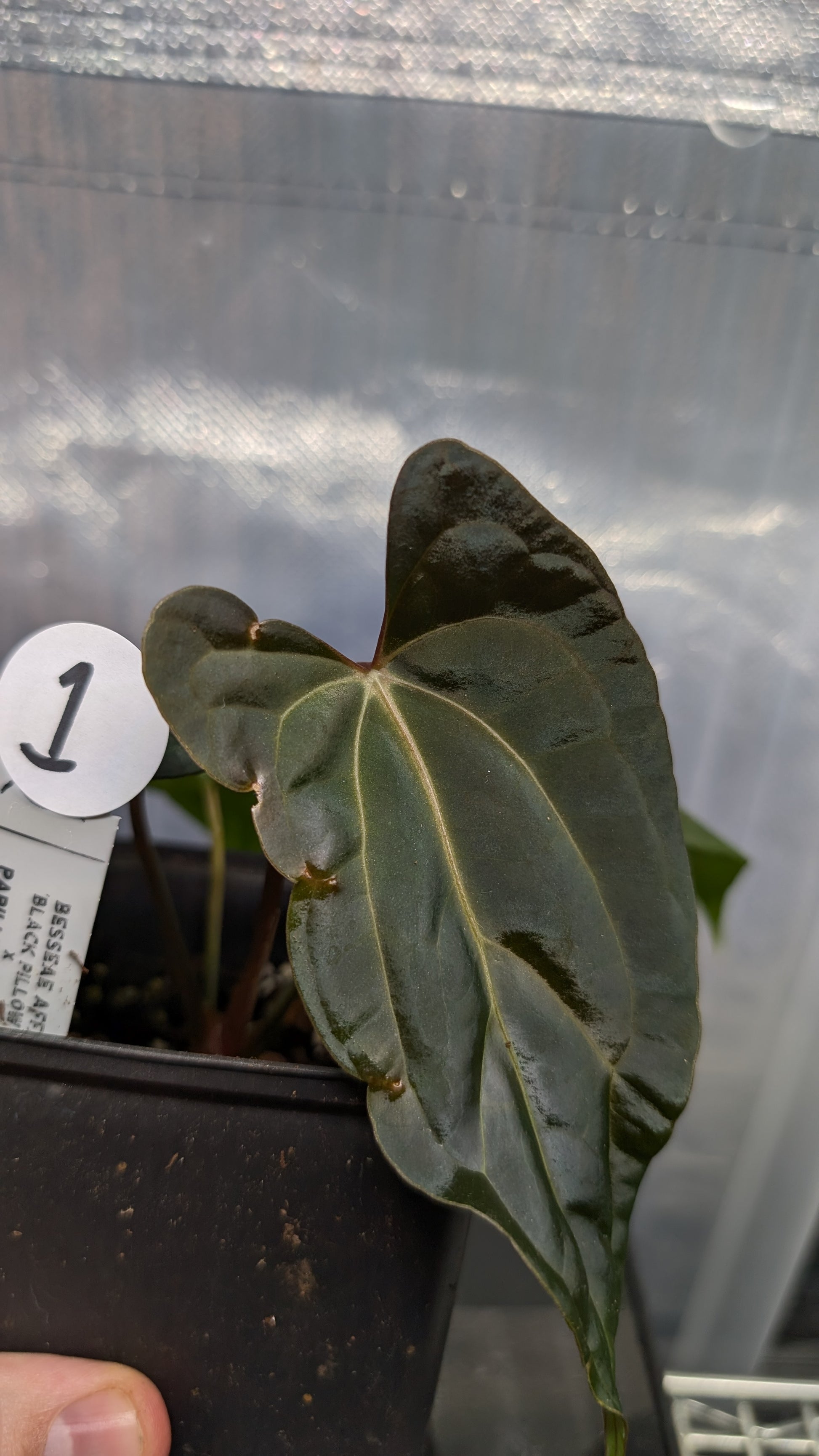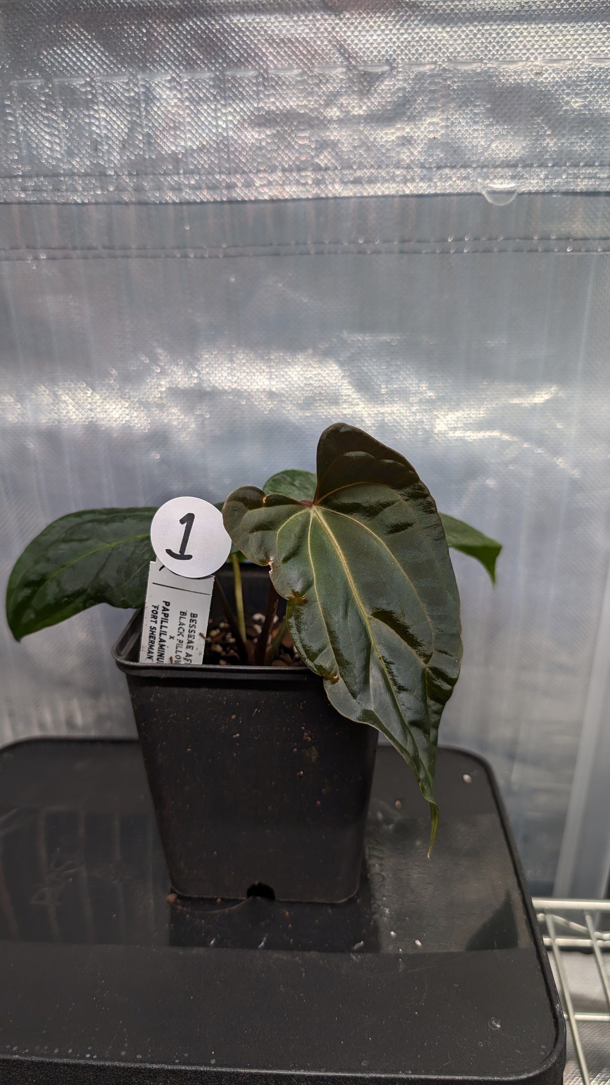 Anthurium Besseae aff 'Black Pillow' x Papillilaminum 'Fort Sherman' seedlings