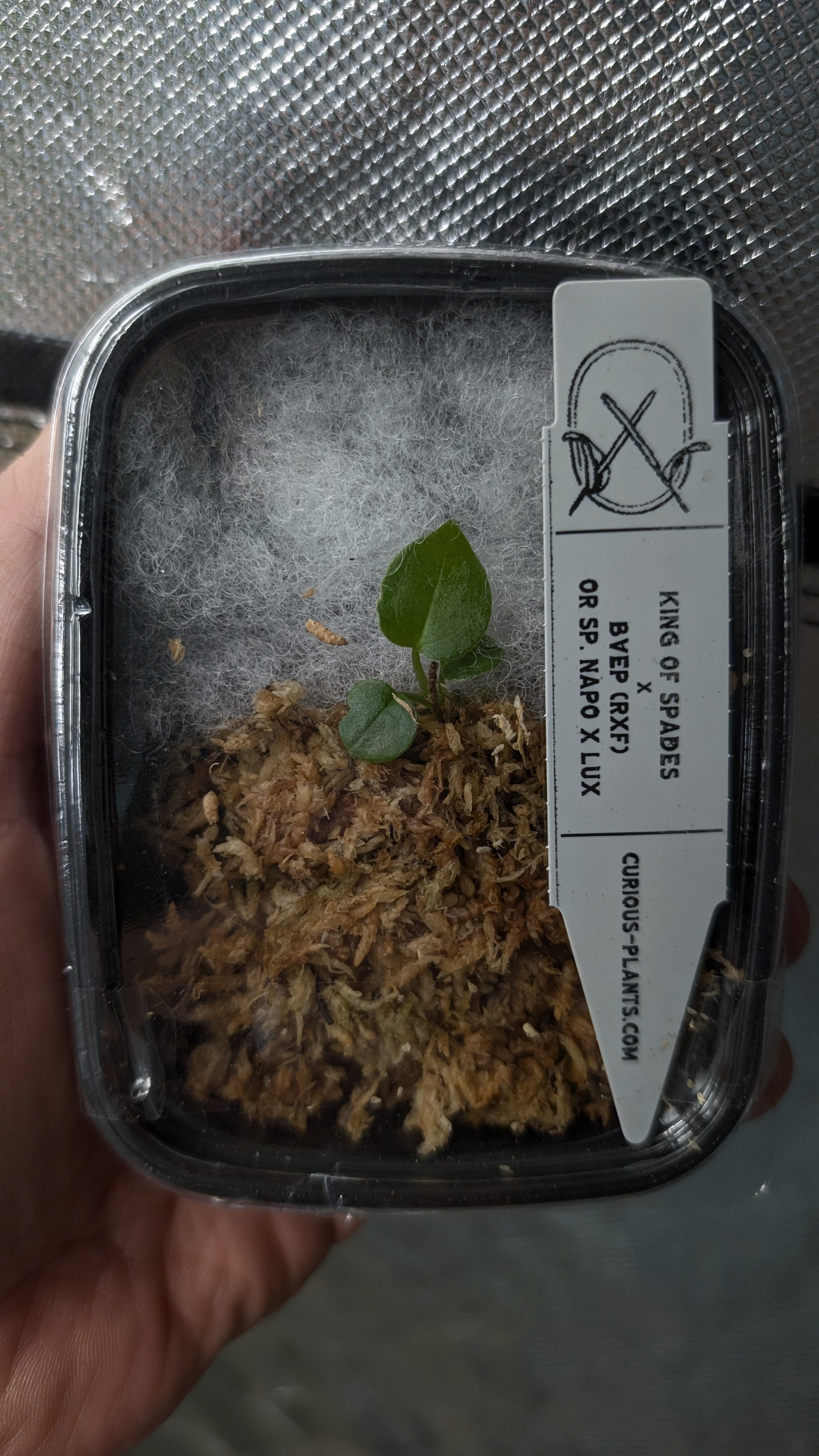 Small seedling with 2-3 leaves shipped in moss.