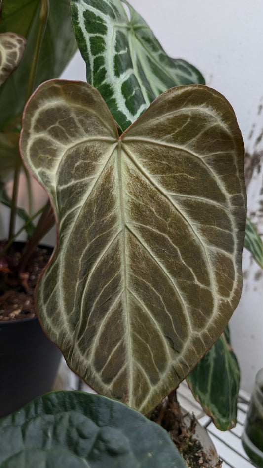 Anthurium Silver Blush Mint variegated x Papillilaminum 'Daniel'