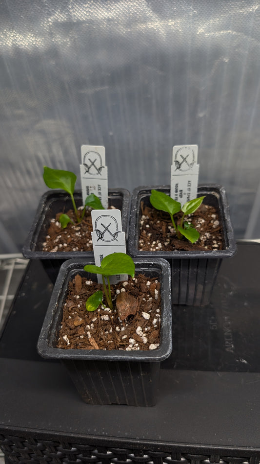 Anthurium Besseae aff 'Black Pillow' x Papillilaminum 'Fort Sherman' seedlings